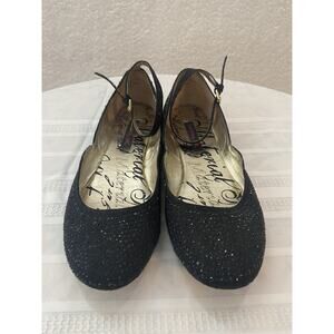 Steve Madden Rhinestone Ankle Strap Classic Flats 8.5 Black Sparkle Glam Chic