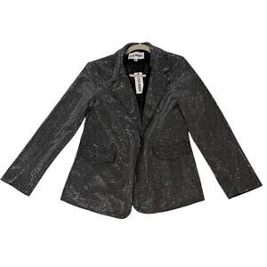 Steve Madden Rhinestone Blazer XS Black Silver Sparkle Party Jacket