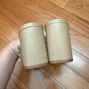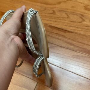 Never worn but there is a nick on one of the heels. Otherwise perfect condition. They are so sparkly in person!