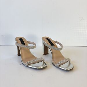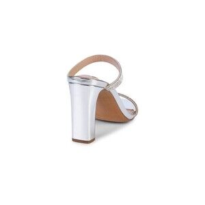 Steve Madden Rhinestone Embellished Mule Sandals Leather Metallic Silver Size 8