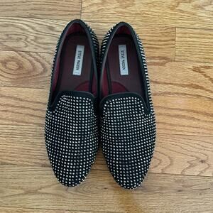 Steve Madden Rhinestone Loafers Mens 13 Black Leather Silver Bead Formal Shoes