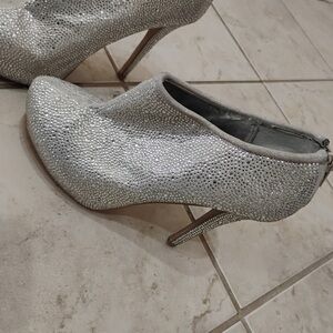 Steve Madden Rhinestone Silver Bootie Heels Sparkle Glam Fashion Size 9.5