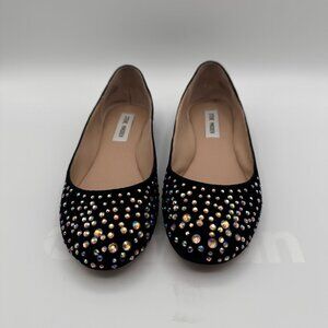 Steve Madden Rhinestones Tops Bling Black Ballet Flats Size 7