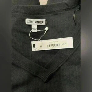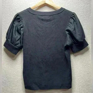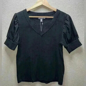 Steve Madden Ribbed V Neck with Puffed Sleeve Top Large