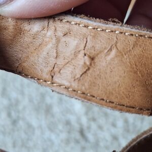 Steve Madden Ricki Boho Tan Suede Peep Toe Adjustable Buckle closure High Heel Club Going out Some cracking on inside of strap, shown in last pic Womens Size 9M