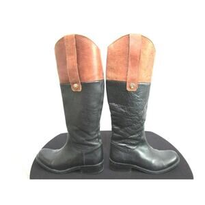 Steve Madden Rogerrr Black Brown Leather Zip Knee High Riding Boots Sz 6.5 M
