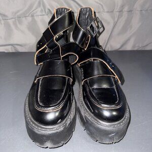 Steve Madden Rogue Black Ankle Bootie Women's 7.5 Platform Biker Buckle Up