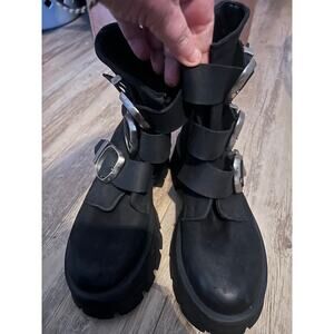 Steve Madden Roland Unisex Black Leather Biker Boots Size 7 Zip Closure Grunge