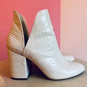 Steve Madden Rookie White Crocodile Texture Heeled Booties Size 8
