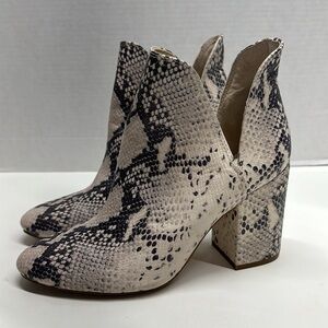 Steve Madden Rookie Bootie High Heeled Ankle Boots Natural Vegan Snake Print 9
