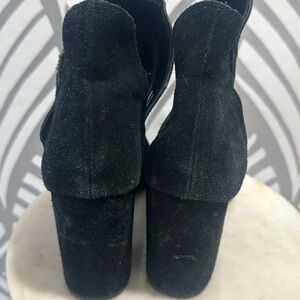 Steve Madden Rookie ankle suede booties. Size 9. Black suede. Leather uppers. Blemish on heel of right shoe. Heel measure’s approximately 3.5 inches.