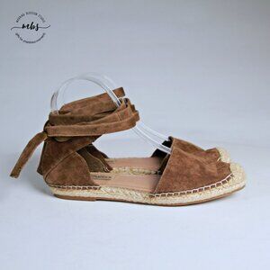 Steve Madden Rosette Suede Leather Ankle Wrap Espadrille Flats Green Tan Women 6