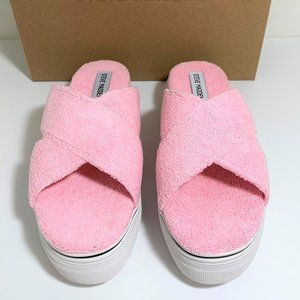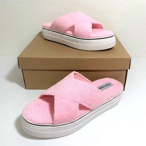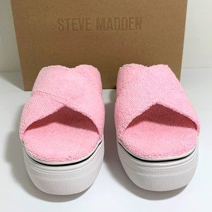 Steve Madden Rotation Sandals Crisscross Platflorm Slip On Pink Terry Size 8 NEW