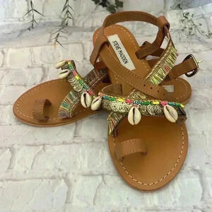 Steve Madden Rowan Neon Rainbow Leather Sandals with Puka Shells
