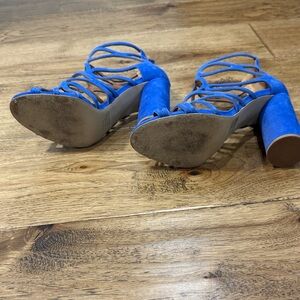 Elegant royal blue heels with intricate strappy design. Perfect for adding a bold touch to any outfit. Worn once, in great condition.
