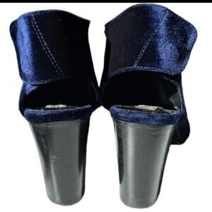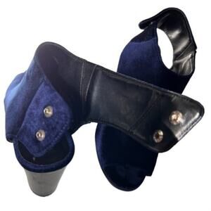 Gorgeous blue velvet open toe bootie style heels! The large strap wraps around your ankle and snaps together. Will fit a 7 or 7.5, ran small for me. These feel AMAZING and soft and feminine on; would be great for a date night out, a festival, cosplay, and even work or with a dress.