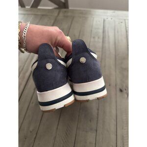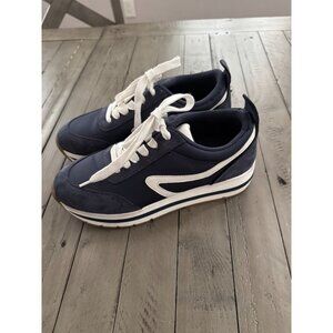 Steve Madden Rueben Platform Sneakers Leather Suede Navy Blue White Size 8