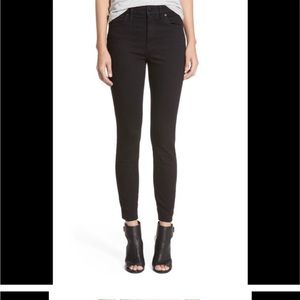Black leather moto style boot.