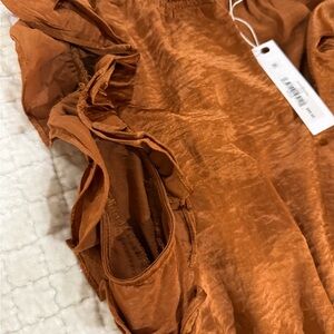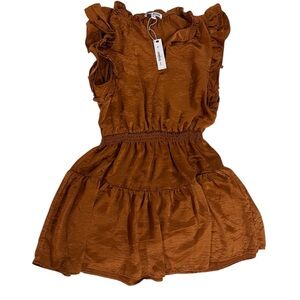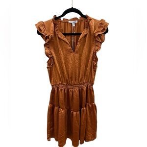 Brand new with tags. Chic rust mini dress with ruffled sleeves. Perfect for stylish outings.