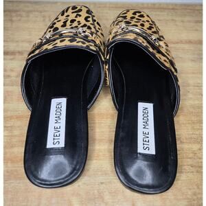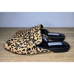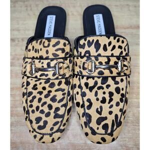 Steve Madden Rylie Mules Women's 8M Leopard Print Cow Hair Vegan Leather Slip On