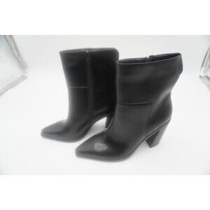 Brand new with box without tags Steve Madden SILVEE Black Leather Mid-Calf Pointed Toe Block Heel Bootie size 7.5M.