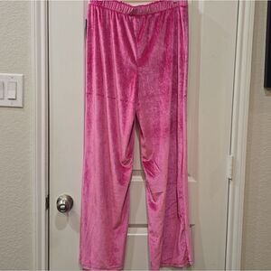 Soft velour fabric. Elastic waistband. Relaxed fit. Perfect for lounging.