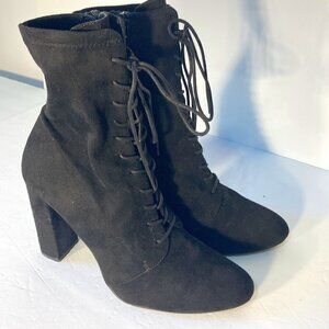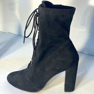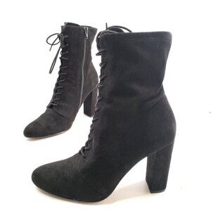 Steve Madden SZ 10 Elley Mid Calf lace up heeled black faux suede boots