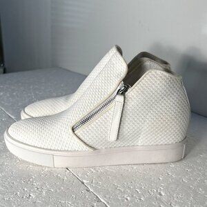 Steve Madden SZ 8.5 White Hidden Wedge Ankle Sneaker Modern Sporty Minimalist
