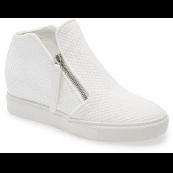 Steve Madden SZ 8.5 White Hidden Wedge Ankle Sneaker Modern Sporty Minimalist