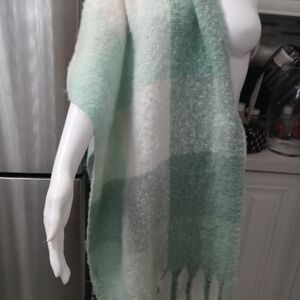 Steve Madden Sage white Buffalo plaid blanket Wrap with Fringe SMA-768 NEW