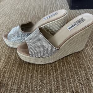 Steve Madden Sanctuary Rhinestones Crystals Bling Slip-On Wedge Sandals size 8 M