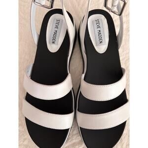NWOT Steve Madden Sandal Womens White Flat Open Toe Buckle Closure Casual Chic Size 8.5