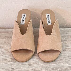 Steve Madden Sandals Slides Heels 6 Chance Tan Pink Taupe Stone Suede Leather