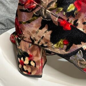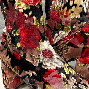 Steve Madden “Sania ” Red Floral Velvet Ankle Boots with Block Heel size 6.5