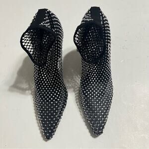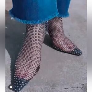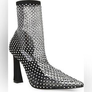 The SAPHINA boots update the classic point toe stiletto bootie by using our sheer rhinestone mesh for the upper.