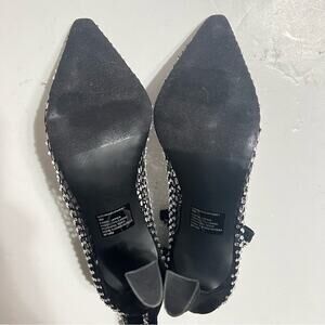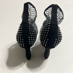 Micro suede, mesh textile, lucite, and rhinestones upper material