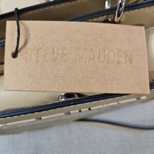 The bag boasts a secure snap closure and a comfortable crossbody strap that adjusts for a perfect fit. Inside, you'll find a practical fabric lining in a soft beige, ensuring your belongings are cradled in style. The detachable strap adds versatility, allowing for effortless transition from a daytime bag to an evening clutch. With the included Air Pod case accent, this Steve Madden Bevelyn purse is not just a fashion statement, but a functional piece that keeps up with your dynamic lifestyle.