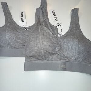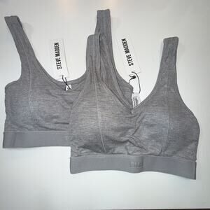 Steve Madden Set of 2 Women's Ribbed Stretch Bralette heather grey Small