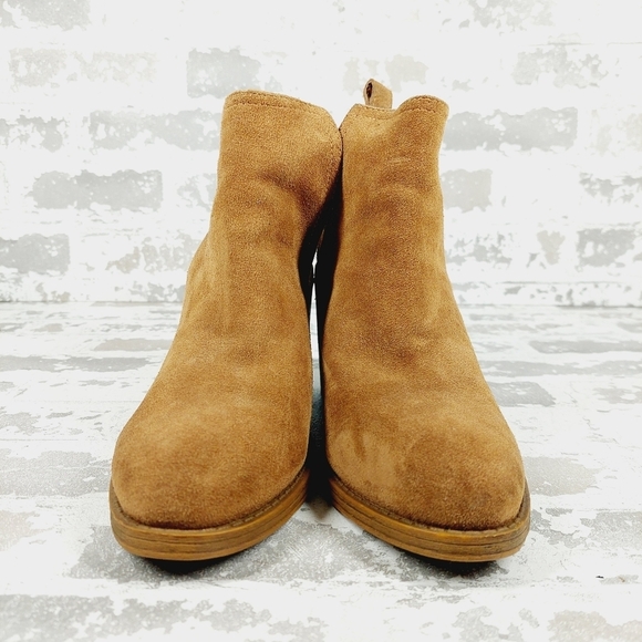 Steve Madden Sharini Tan Suede Cut-Out Notch Block Heel Ankle Booties H936