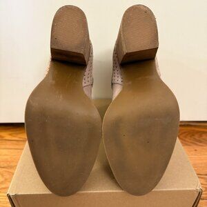 Featuring- chic split shaft, pull-on style, perforated contrast rear, whip stitch detail, and chunky 3.5" wood block heels.