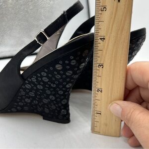 Steve Madden Shimer Black Slingback Buckle Sequin Peep Round Toe Wedge Heels