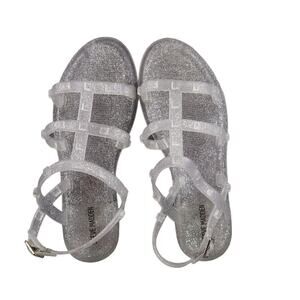 Pre-owned Steve Madden Shoes Womens 5 Sandals Jelly Casual Slingback Glitter Clear Studs Flats