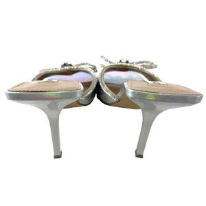 These Steve Madden heels offer a striking holographic finish with elegant bow details. The sleek design is ideal for adding a touch of sophistication to outfits, making them suitable for both casual and formal settings.