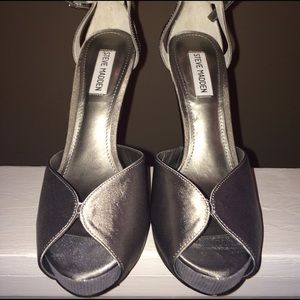 Steve Madden Silver Peep Toe Stiletto, Worn only once for a wedding , 51/2 inch heel , size 9.5 , beautiful shoe , great for wedding, prom or fancy night out ! ☺️ ( Does not come with shoe box)