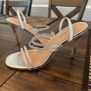 Steve Madden Silver Rhinestone Clear Strap Heels Size 8.5 Elegant Party Sandals