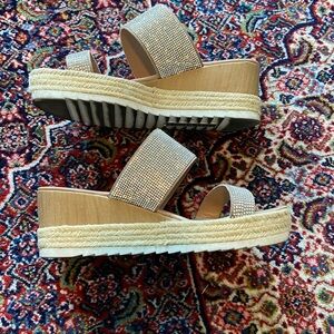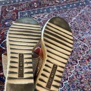 Steve Madden summer sandal. Super cute with little rhinestones on the straps. See photos for where. Overall, very good condition. Must sell moving sale.