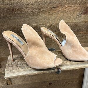 Steve Madden Sinful Nude Suede Leather Mules Heels Size 8.5