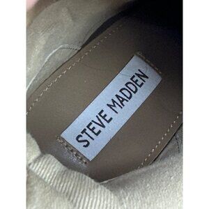 Elevate your style with these Steve Madden Womens 10M Karey Leather Pointed Toe Ankle Boots. Unworn, with a slight mark on the back heel of the right boot, these tan boots feature a chic 4" heel.