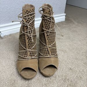 Steve Madden Size 11 Peep Toe Ankle Bootie High Heel Maddye Suede Lattice