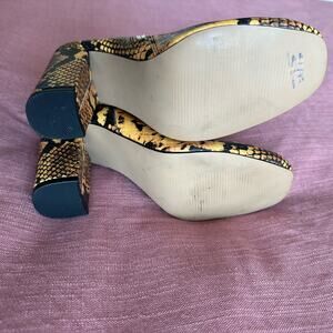 Details: Size 6.5 Pixie Yellow Snake Skin Mid-Calf Booties Block Heel, in great condition! Has a minor stain on the inside of boot and blemishes on the bottom of the boots but otherwise they boots are in amazing condition!